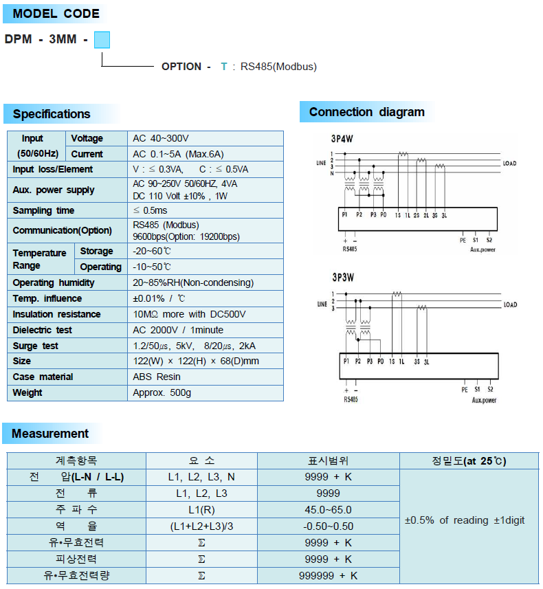 3상 선로의 전압,전류, 주파수, 역률, 각종 전력 및 전력량을 측정하여 표시하는 계기입니다.